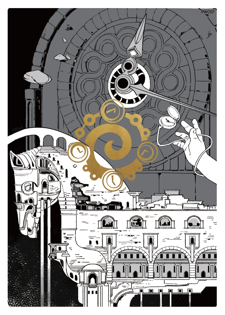 Worms of Time twist and coil into the phantom of an ancient clock in an unreasonable manner. The clock face is divided into 12 sections, and the hands growing from the void can be easily manipulated by a certain unmentionable being, causing the intangible vortex of Time to be rewritten accordingly.